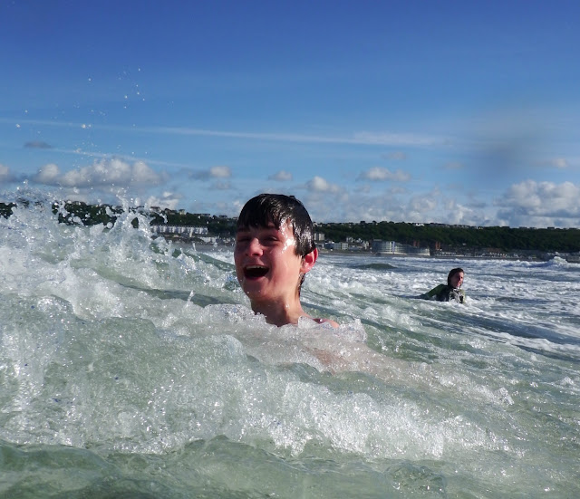 Sam does love wild swimming but he's the one who, I think, most feels the cold of the water, and is most likely to be put off by the temperature. He much prefers the sea if there are good waves. In fact high waves will tempt him in even if the temperature is very brisk still. (I should say that the sea is pretty chilly round here even at the height of Summer, we're not talking balmy waters ever!)